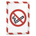 DURAFRAME Security Magnetic Sign Holder, 8.5 x 11, Red/White Frame, 2/Pack. Dual-colored magnetic infoframe for all types of safety and warning information. Attaches to metallic surfaces such as whiteboards, metal cabinets, racking and machinery. Four-sided frame works horizontally or vertically. Sturdy cover pulls back effortlessly for speedy insert updates of safety markings, direction and warning signs such as escape and rescue routes and more. Frame Color: Red/White; Size: 8.5 x 11; Insert Size: 8.5 x 11; Material(s): PVC.
