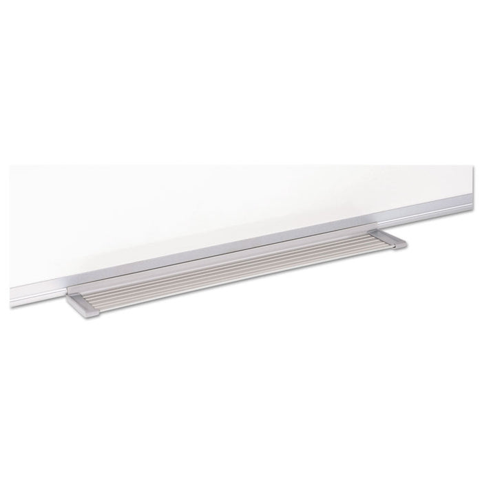 Earth Dry Erase Board, White/Silver, 48 x 96. Basic whiteboard combines durability, superior visibility, exceptionally smooth writing/erasing and scratch resistance, making it perfect for moderate, everyday use. Sturdy aluminum frame features the four-corner system for easy wall mounting, and it may be oriented vertically or horizontally. Handy snap-on pen tray and all mounting hardware are included. Porcelain—Magnetic surface. Board Type: Magnetic Dry Erase; Board Width: 96"; Board Height: 48"; Surface Material: Porcelain-Steel.