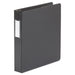 Economy Non-View Round Ring Binder, 3 Rings, 1.5" Capacity, 11 x 8.5, Black. Basic, non-view, economical binder for light use. Binder features back-mounted, non-locking rings. Two inside pockets provide extra storage for loose documents. Poly material is non-stick, so inserts and pockets won't lift print. With Label Holder—For quick and easy identification of contents. Binder Type: Ring; Binder Style: Non-View; Binder Size Capacity: 1.5"; Binder Sheet Capacity: 275.