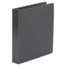 Economy Non-View Round Ring Binder, 3 Rings, 1.5" Capacity, 11 x 8.5, Black, 4/Pack. Basic, non-view, economical binder for light use. Binder features back-mounted, non-locking rings. Two inside pockets provide extra storage for loose documents. Poly material is non-stick, so inserts and pockets won't lift print. Binder Type: Ring; Binder Style: Non-View; Binder Size Capacity: 1.5"; Binder Sheet Capacity: 275.