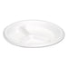 Elite Laminated Foam Dinnerware, 3-Comp Plate, 10.25"Dia, White, 125/PK, 4 PK/CTSturdy and strong.