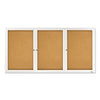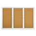 Enclosed Bulletin Board, Natural Cork/Fiberboard, 72 x 48, Silver Aluminum Frame. Extend the life of your signs by hanging them in an enclosed board. Easily post signs, documents, photos and more to natural cork board surface using push pins. The shatterproof acrylic doors are both protective and crystal clear. Three Doors. Board Type: Bulletin; Board Width: 72"; Board Height: 48"; Surface Material: Cork.