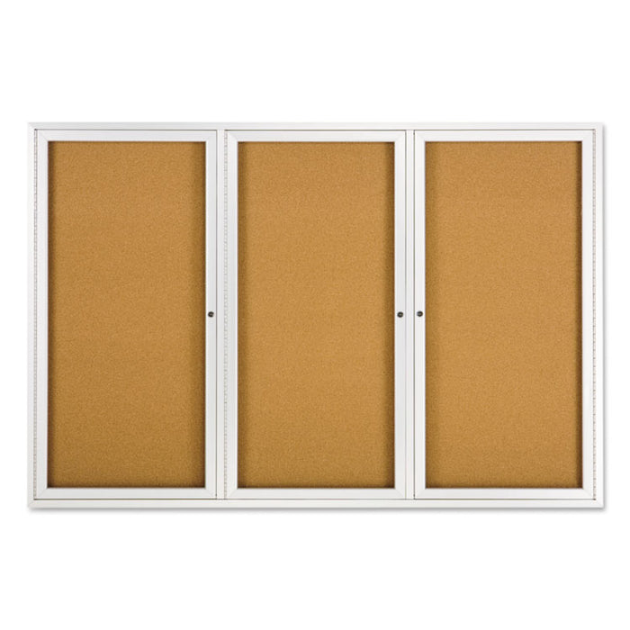 Enclosed Bulletin Board, Natural Cork/Fiberboard, 72 x 36, Silver Aluminum FrameDisplay and protect information behind clear, shatterproof acrylic locking doors.
