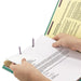 End Tab Colored Pressboard Classification Folders with SafeSHIELD Coated Fasteners, 2 Dividers, Legal Size, Green, 10/Box. Protect your documents and fingers with SafeSHIELD® coated fastener technology—the ultimate solution to fastener issues, including paper tears, finger cuts and excessive fastener crinkling. Folder: 25 pt. pressboard covers with straight cut tabs (labels sold separately). Two 2" SafeSHIELD® bonded-style coated fasteners in positions no. 1 and 3. Divider: 17 pt. Kraft dividers. 1" SafeSHIELD® coated twin-prong fastener front and back. This product was made using wood sourced from a certified managed forest. Folder Size: Legal; Total Number of Dividers: 2; Total Number of Fasteners: 6; Max Folder Expansion: 2".