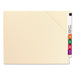 End Tab Jackets with Reinforced Tabs, Straight Tab, Letter Size, 11-pt Manila, 100/Box. Jackets keep materials safely inside. Perfect for items that can't be hole punched. Angled front reveals contents, allows easy access. Great for medical charts, X-rays and more. Labels sold separately. This product was made using wood sourced from a certified managed forest. 11 Pt. Manila Stock. Number of Sections: 1; Tab Cut: Straight; Size: Letter; Punched/Unpunched: Unpunched.