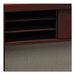 Enterprise Collection 60W Low Hutch, Mocha Cherry. Enterprise Collection 60W Hutch offers a transitional styling that creates a professional impression anywhere. Constructed with 100% thermally fused laminate for durability and superior resistance to scratches and stains. The 60W Hutch connects with the 60W Double Pedestal or 60W x 60D L-Desk to expand the functionality of your workspace, plus includes work-in-process compartments to help organize paperwork. Enjoy sliding doors to protect open storage compartments, a back panel with a coordinating Tackboard and works with two optional Task Lights (sold separately). Eliminate the chaos of cables, cords and plugs with our integrated wire management feature. Color: Mocha Cherry; Color Family: Cherry; Overall Width: 60"; Overall Depth: 12.38".
