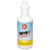 Enzym D Digester Deodorant, Mint, 1qt, Bottle, 12/Carton. BIG D® ENZYM D digests organic waste and destroys odors associated with the decay of organic matter. It is highly effective in eliminating the organic salts associated with urine which cause odors. Specially bred enzyme/bacteria cultures attack and break down uric acid molecules by digesting the source, just the way nature does it– but in minutes rather than days or weeks. ENZYM D also contains BIG D® deodorant, which neutralizes odors on contact. Scent: Mint; Physical Form: Liquid; Application: Odor Control; Capacity (Volume): 32 oz.