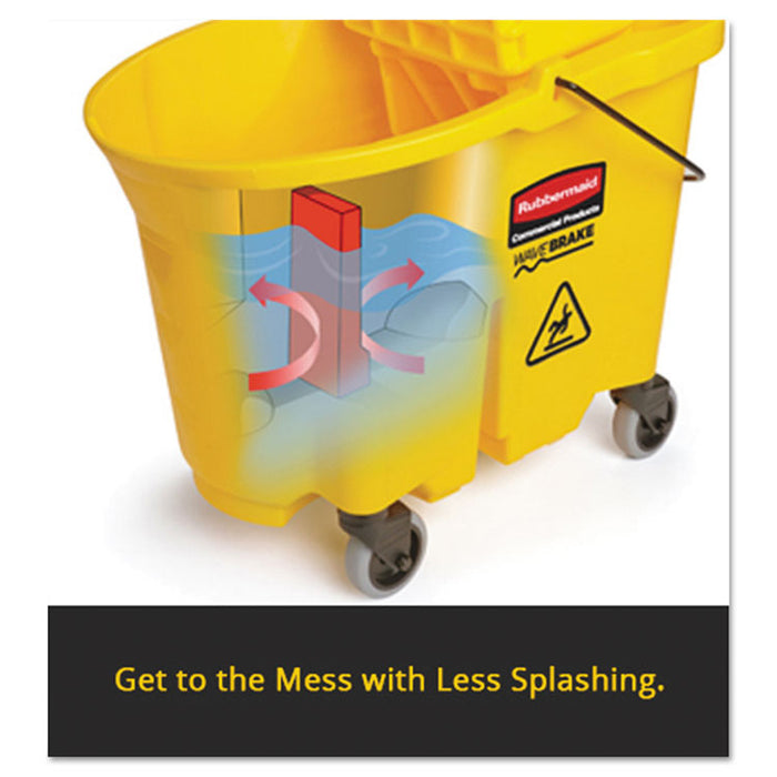 Executive WaveBrake Down-Press Mop Bucket, Gray, 35 Quart. Maintain your clean with a powerful, durable down-press mop bucket, built to exceed 100,000 wringing cycles. Separates dirty water from clean water, concealing it and preserving the quality and cleaning power of cleaning solutions. Convenient and easy measuring, with graduated measurement markings. Discreet coloring hides dirt and maintains a positive image. WaveBrake system reduces splashing by up to 40%, preventing unnecessary mess. Quiet casters reduce noise - will not disturb guests and visitors. Capacity Range (Volume) [Max]: 35 qt; Material(s): Plastic; Color(s): Gray; Wringer: Down-Press Wringer.