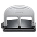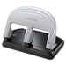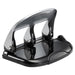40-Sheet EZ Squeeze Three-Hole Punch, 9/32" Holes, Black/Silver. With ProPunch® paper-punch technology, easily punch through stacks of paper using 50% less effort. An integrated paper guide ensures consistent three-hole placement, and a non-slip base provides stability during use. For compact storage in desk drawers, a built-in mechanism keeps the handle locked down. For chip waste, an internal chamber with a rear-mounted flip-open door ensures mess-free collection and disposal. Get sleek, long-lasting, all-metal construction and smooth, jam-free performance when you choose inPRESS™ punches. Sheet Capacity: 40; Operating Method: Manual; Number of Holes: 3; Hole Diameter: 9/32".