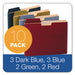 File Folder Pocket, 0.75" Expansion, Letter Size, Assorted Colors, 10/Pack. Closed on three sides to offer more security than a standard file folder. Unique design expands without gussets, so your paperwork can be inserted and stored neatly inside, without the interference of gussets. Double top tab. Large 150-sheet capacity. 11 pt. stock. Pocket/Wallet Type: Files/Papers; Size: Letter; Overall Expansion: 0.75"; Color(s): Assorted.