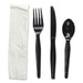 Four-Piece Cutlery Kit, Fork/Knife/Napkin/Teaspoon, Heavyweight, Black, 250/Carton
