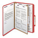 Four-Section Pressboard Top Tab Classification Folders with SafeSHIELD Fasteners, 1 Divider, Legal Size, Bright Red, 10/BoxPartition folders with patented SafeSHIELD coated fasteners help prevent finger cuts, eliminate paper tears and reduce excessive fastener crinkling.