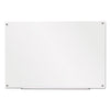 Frameless Glass Marker Board, 72" x 48", White. Glass board surface clearly displays any color of dry-erase ink. Infinity edge gives a modern look to any office or conference room. Easy to install with included pass-through mounting hardware. Glass board can hang vertically or horizontally. Includes one dry-erase marker. Board Type: Glass; Board Width: 72"; Board Height: 48"; Surface Material: Glass.