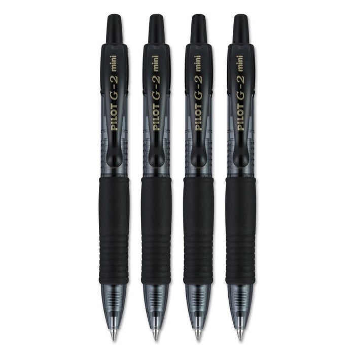 G2 Mini Retractable Gel Pen, Fine 0.7mm, Black Ink/Barrel, 4/Pack. Fun and compact size is ideal for pockets, purses or notebooks. Super smooth writing gel ink. Comfortable to hold with a contoured and latex-free rubber grip. Pen Sub-Brand & SKU Line: G2® Mini; Pen Style: Retractable; Pen Type: Gel Pen; Refillable (Yes/No): Yes.