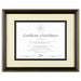 Gold-Trimmed Document Frame, Wood, 11 x 14 Matted to 8.5 x 11, Black. Gold detail adds elegance to frame. Includes one 8-1/2 x 11 ready-to-use certificate. Includes Off-White Die-Cut Mat and Hangers for Wall Display. Frame Type: Certificate/Document; Frame Material: Plastic; Frame Color: Black/Gold; Color Family: Black.