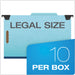 Hanging Classification Folders with Dividers, Legal Size, 2 Dividers, 2/5-Cut Tab, Blue. Keep related records in one hanging folder. Pivoting hangers fold down for carry-along convenience. 1" capacity fasteners on both sides of 20 pt. pressboard dividers and inside both 25 pt. pressboard covers. Expandable reinforced rip-proof tape gusset bottom. 2/5 cut tabs, right of center. Folder Size Type: Legal; Max Folder Expansion: 2"; Folder Color: Blue; Color Family: Blue.