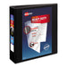 Heavy-Duty Non Stick View Binder with DuraHinge and Slant Rings, 3 Rings, 2" Capacity, 11 x 8.5, Black, (5500). With this Heavy-Duty Nonstick View Binder you get one-touch operation and the durability required for everyday use. Nonstick material won't lift ink or toner off printed pages. Tear-resistant DuraHinge® design is stronger and lasts longer. DuraEdge® feature makes the sides and top more pliable, providing greater split resistance. Deeply textured film offers a smoother finish and features a linen pattern for a high-quality look and feel. Four clear, interior pockets provide extra storage space. Wider front and back panels fully cover standard dividers and sheet protectors. Slant rings have a higher page capacity when compared to the same size round rings. Pages lie flat with back-mounted rings (exposed rivets on back). Customize your title page using free templates and designs at Avery® Design & Print Online. One Touch Slant Rings—Opens easily and holds more sheets than the same size round rings. Binder Type: Ring; Binder Style: View; Binder Size Capacity: 2"; Binder Sheet Capacity: 500.Nonstick material won’t lift ink or toner off printed pages.Tear-resistant DuraHinge® design is stronger and lasts longer.DuraEdge® feature makes the sides and top more pliable, providing greater split resistance.Deeply textured film offers a smoother finish and features a linen pattern for a high-quality look and feel.Four clear, interior pockets provide extra storage space.Wider front and back panels fully cover standard dividers and sheet protectors.Slant rings have a higher page capacity when compared to the same size round rings.Pages lie flat with back-mounted rings.Exposed rivets on back.Customize your title page using free templates and designs at Avery® Design & Print Online.