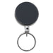 Heavy-Duty Retractable ID Card Reel, 18 1/2" Extension, Black/Chrome, 6/Pack. Retractable cord allows convenient scanning/swiping of cards. Instant access to badges, cards or keys. Belt clip attaches to most articles of clothing. Steel link chain and nickel-plated steel split key ring. Cord Material(s): Steel-Link Chain; Cord Length: 18 1/2"; Reel Frame Material(s): Steel; Color(s): Black/Chrome.