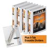 - Includes four heavy-duty round-ring view binders and one set of single-sided insertable five-tab dividers.