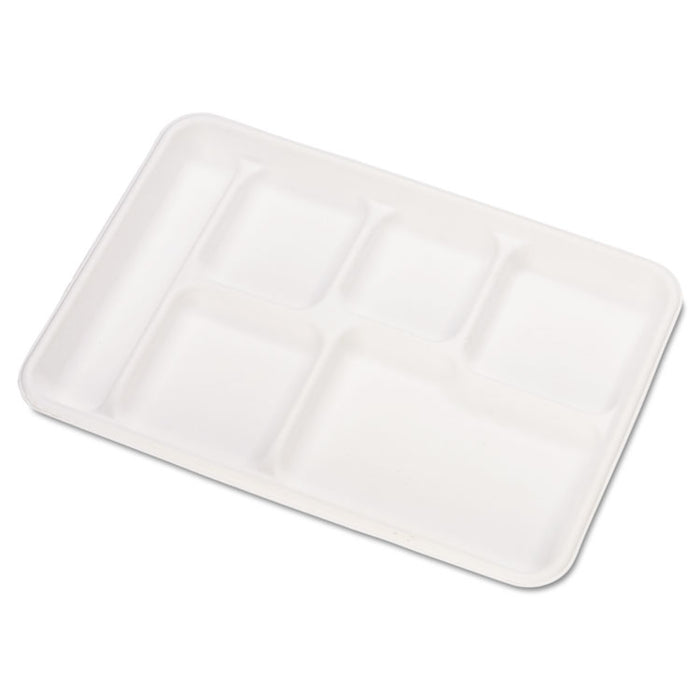 Heavy-Weight Molded Fiber Cafeteria Trays, 6-Compartment, 12.5 x 8.5, White, Paper, 500/Carton