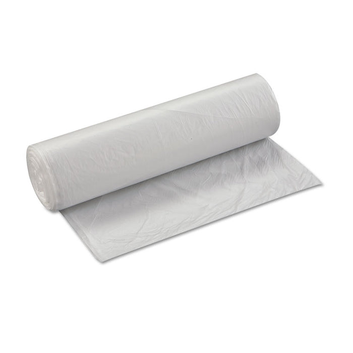 High-Density Commercial Can Liners Value Pack, 56 gal, 11 microns, 43" x 46", Clear, 200/CartonCompact, coreless interleaved rolls designed for effortless one at a time bag dispensing.