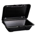 Hinged-Lid Foam Carryout Containers, Deep, 9 1/4x6 1/2x2 7/8, 100/Bag, 2 Bg/Ctn. Keep food fresh and temperature controlled. Reliable wide-wedge and groove-slot closure ensures secure food transport and storage. Convenient one-piece, hinged-lid design simplifies putting together orders for delivery and take-out. Compartmentalized options available. Food Container Type: Carryout; Material(s): Foam; Color(s): Black; Width: 9 1/4 ".