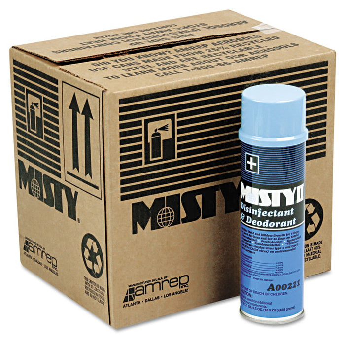 Hospital Disinfectant & Deodorant, Fresh Scent, 16.5oz Aerosol, 12/Carton. This hospital disinfectant with a phenol-based formula can disinfect, kills HIV, TB, Herpes I and II, as well as the hospital trio, effective against antibiotic resistant strains VRE, MRSA, CA-MRSA. Control residual mold and mildew (up to seven days on hard surfaces, 28 days on fabrics). After cleaning, formula leaves a fresh, clean scent. 360° valve. Great for performing powerful disinfecting on a wide range of surfaces such as refuse cans, toilet seats, telephones and door knobs. Features a 360 degree valve to spray formula in any direction—even upside down. Application: Disinfectant/Sanitizer; Applicable Material: Ceramics; Enamel; Fiberglass; Glass; Laminates; Metal; Plastic; Vinyl; Dirt Types: Bacteria; Fungus; Germs; Mildew; Mold; Viruses; Scent: Fresh.