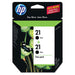 HP 21, (C9508FN) 2-pack Black Original Ink Cartridges. Creates a smooth, crisp professional look with dramatic tone, texture and detail. Print quality images graphics and text time and time again. Each cartridge is built to withstand even the toughest tasks. 2-Pack. Device Types: Inkjet Printer; Color(s): Black; Page-Yield: 190; Supply Type: Ink.