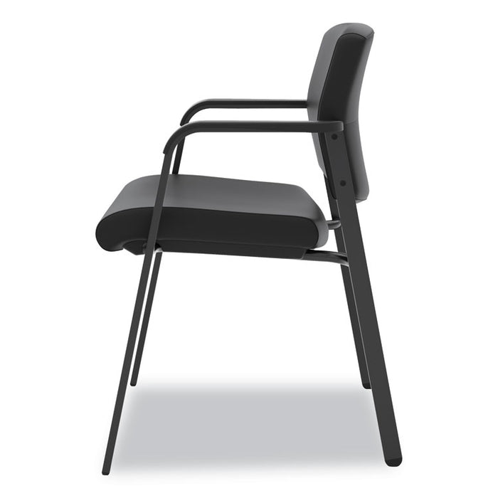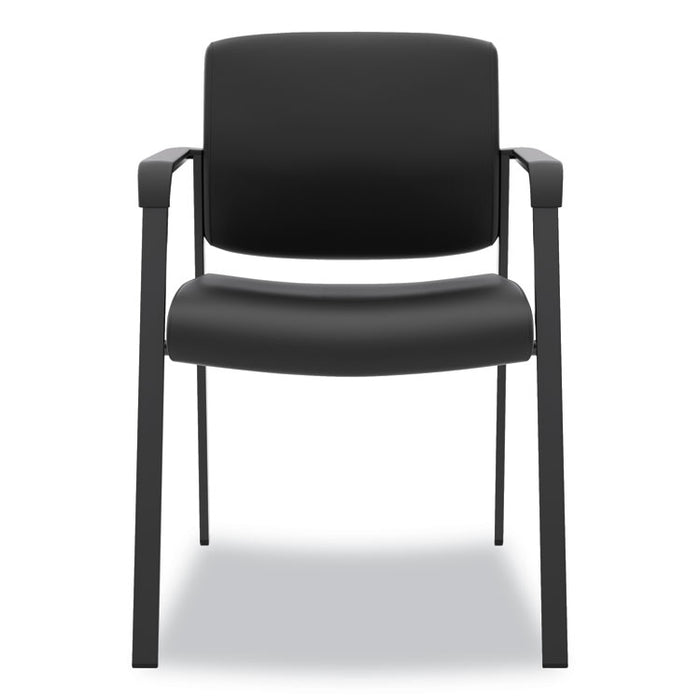 HVL605 Guest Chair, 23.5" x 24" x 35", Black. Contemporary rectilinear steel frame adds strength and durability. Layers of multi-density foam in seat and back provide long-lasting comfort. Waterfall seat edge promotes better leg circulation. Recommended Applications: Executive & Management; Guest, Reception, Waiting Room & Lounge; Seat Color: Black; Back Color: Black; Color Family: Black.