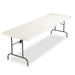 IndestrucTable Industrial Folding Table, Rectangular Top, 1,200 lb Capacity, 96 x 30 x 29, Platinum. Commercial grade folding table with contemporary design. Ideal for indoor and outdoor use. Top is made with blow-molded high-density Polyethylene and is resistant to dents, scratches, and stains. Lightweight, portable, and easy to store. Strong, powder-coated 1" tubular steel legs fold into table's underside and are protected while stored. Non-mar feet protect flooring. Standard Rectangle—Holds 1,200 lbs. evenly distributed (except as noted). Top Color: Platinum; Color Family: Gray; Top Shape: Rectangular; Overall Width: 96".