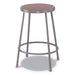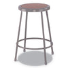 Industrial Metal Shop Stool, Backless, Supports Up to 300 lb, 30" Seat Height, Brown Seat, Gray Base. Ideal in the shop, garage, science or art lab, factory floor, or anywhere where durability matters most. Warp-, crack-, and chip-proof Masonite board is riveted to the seat pan. Built-in foot ring provides a place to rest your feet when seated. Includes non-marring floor glides. Stackable to save space. Recommended Applications: Drafting; Seat Color: Brown; Back Color: Gray; Color Family: Brown.