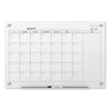Infinity Magnetic Glass Calendar Board, 24 x 18. Tempered-glass, magnetic dry-erase calendar is highly durable. It provides smooth writing and erases cleanly after every use, without ghosting or staining. The frameless, one-month design is a good fit for any office. Write down appointments or post notes using magnets. Hardware is included for simple and secure wall mounting. Occasional cleaning is recommended for best performance. One marker and magnets included. Board Type: Magnetic Dry Erase Calendar; Board Width: 24"; Board Height: 18"; Surface Material: Glass.