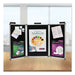 Justick Three-Panel Electro-Surface Table-Top Expo Display, 72" x 36", Black. From a company's lobby to an industry trade show, Smead® Justick has a series of solutions to engage your customers and create a dynamic brand experience. No pins, magnets, tape or glue required-simply place your documents on the surface and they just stick. Board Type: Table Top Expo Display; Board Width: 72"; Board Height: 36"; Board Depth: 1".