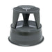 Kik-Step Steel Step Stool, 2-Step, 350 lb Capacity, 16" dia. x 14.25h, Black. Spring-mounted casters retract when stool is stepped on. Steel construction with nonslip vinyl treads and protective bumper around base. Ships in two pieces and requires no tools for assembly. Number of Steps: 2; Step Stools Type: Rolling Step Stool; Working Height: 14.25"; Frame Material: Steel.