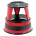 Kik-Step Steel Step Stool, 2-Step, 350 lb Capacity, 16" Diameter x 14.25"h, Red. Spring-mounted casters retract when stool is stepped on. Steel construction with nonslip vinyl treads and protective bumper around base. Ships in two pieces and requires no tools for assembly. Number of Steps: 2; Step Stools Type: Rolling Step Stool; Working Height: 14.25"; Frame Material: Steel.