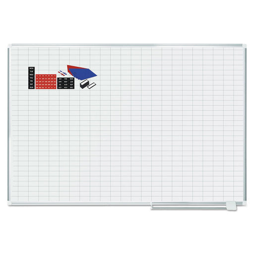Original price $310.51Current price $282.28/EAGridded Magnetic Steel Dry Erase Project Planning Board, w/Accs, 1" x 2" Cell, 72" x 48", White Surface, Satin Aluminum Frame