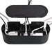 Large Cable Tidy Units, 16.5" x 6.5" x 5.25", Black. Reclaim lost floor and desk space by simply hiding unsightly cords and power strips. Easy to use, and makes surfaces easier to clean. Includes three cord entry and exit slots for versatile use. Cable Management Type: Cord Concealer; Closure: Click-Lock; Color(s): Black; Width: 16.5".Hide unsightly cord clutter and power strips.Reclaim desk and floor space.Make surfaces easier to clean.Minimize trip and spill hazards.Removable click-lock lid.Three cord slots in the back enable cords to enter and exit left, right or vertically.Neat stylish design.Fully safety tested.Use flat top as stand for ancillary items.Can integrate with D-Line® Cord Cover lengths when next to a wall.