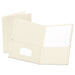 Leatherette Two Pocket Portfolio, 8 1/2" x 11", White, 10/PK. Holds letter-size paper. Textured leatherette covers. Keep contacts at hand with a die-cut business card holder on the inside cover. Front Cover Color(s): White; Color Family: White; Back Cover Color(s): White; Sheet Size: 8 1/2 x 11.