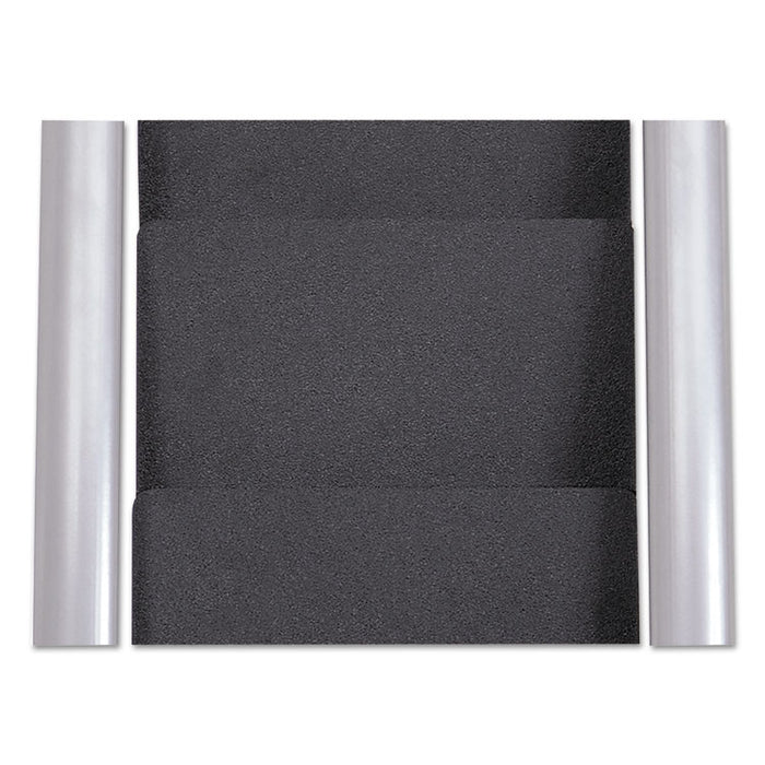 Literature Floor Rack, 6 Pocket, 13.33w x 19.67d x 36.67h, Silver Gray/Black. Who says your literature rack has to be boring? The combination of metal and plastic offers a unique and elegant design, with clean and updated lines. Its compartments provide immediate identification of documents. Large base with non-slip pads offers extreme stability. Straight Top On Each Compartment; Holds 400 Sheets Per Compartment. Color: Silver Gray/Black; Color Family: Black; Overall Width: 13.33"; Overall Depth: 19.67".