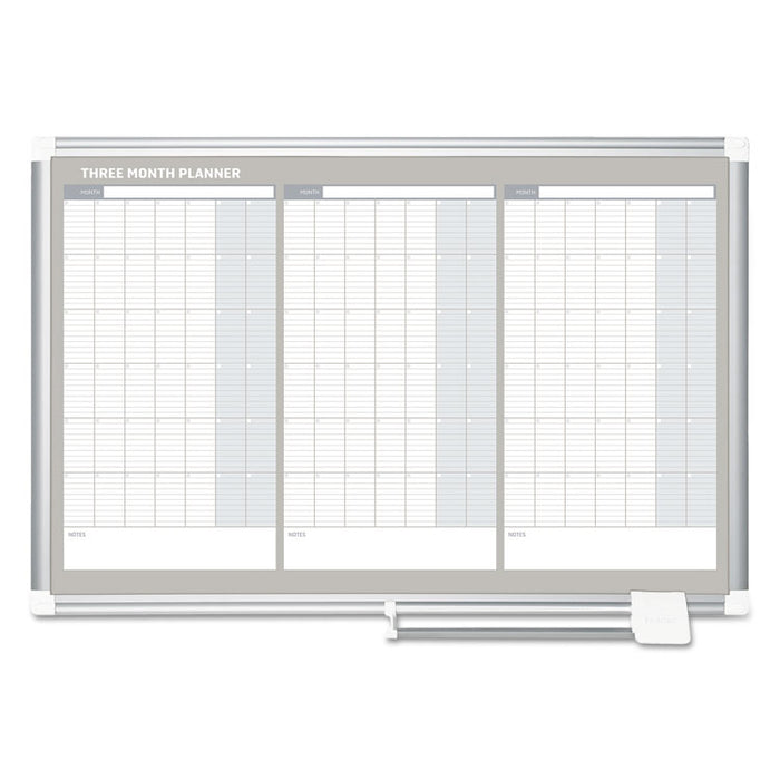 Magnetic Dry Erase Calendar Board, 36 x 24, Silver Aluminum Frame. Organization is vital for the success of every business or enterprise. Excellent tool that allows you to keep scheduling and planning on time. Keeping important dates and tasks on display, organizing work-groups or just planning ahead is practical and easy. Three Month Calendar. Board Type: Magnetic Dry Erase Calendar; Board Width: 36"; Board Height: 24"; Surface Material: Lacquered Steel.