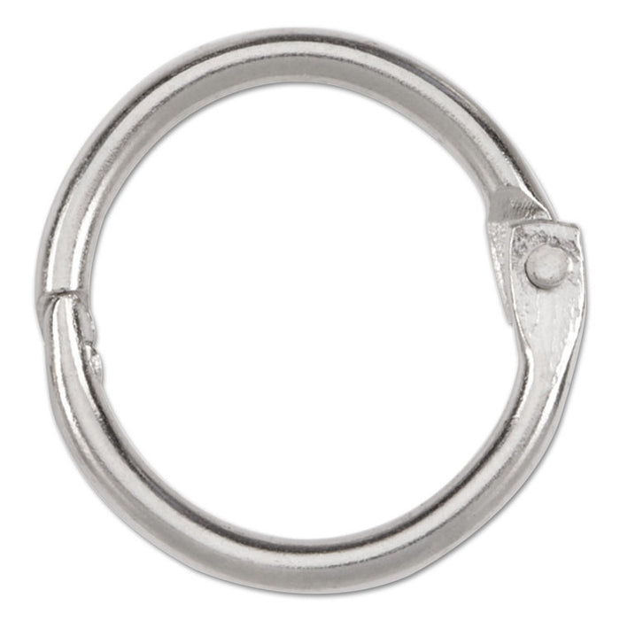 Metal Book Rings, 0.75" Diameter, 100/Box. Loose-leaf rings made with multi-layer nickel-plated steel will not crack or split. Rings open and close easily and lock for extra security. Ring Size: 0.75"; Ring Material(s): Nickel-Plated Steel.