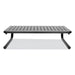 Metal Monitor Riser, 14.63" x 9.25" x 4", Black, Supports 44 lbs. Elevate your monitor to a proper eye position to reduce eyestrain while working. Industrial metal look and U-shaped legs blends nicely with any home or office. Non-skid rubber pads protect work surface from scratches or scuffs. Stand Type: Monitor; Width: 14.63"; Depth: 9.25"; Maximum Height: 4".