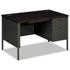 Metro Classic Series Right Pedestal Desk, 48" x 30" x 29.5", Harvest/Putty. Durable, attractively finished laminated top delivers excellent scratch and stain resistance. Color-matched legs, panels drawers and handles tastefully contrast with the top. The high-sided file drawer features full-extension triple-tied cradles and a spring-loaded follower block, while the full-sized box drawer features three-quarter-length tracks and nylon rollers. Universal-lock center drawer allows you to secure all of your drawers with one key turn. Worksurface grommets simplify cable management. Flush side and modesty panels enhance privacy. Color: Harvest/Putty; Color Family: Oak; Pedestal Count: 1; Top Shape: Rectangular.