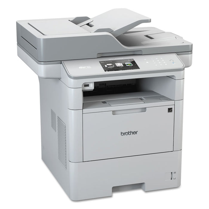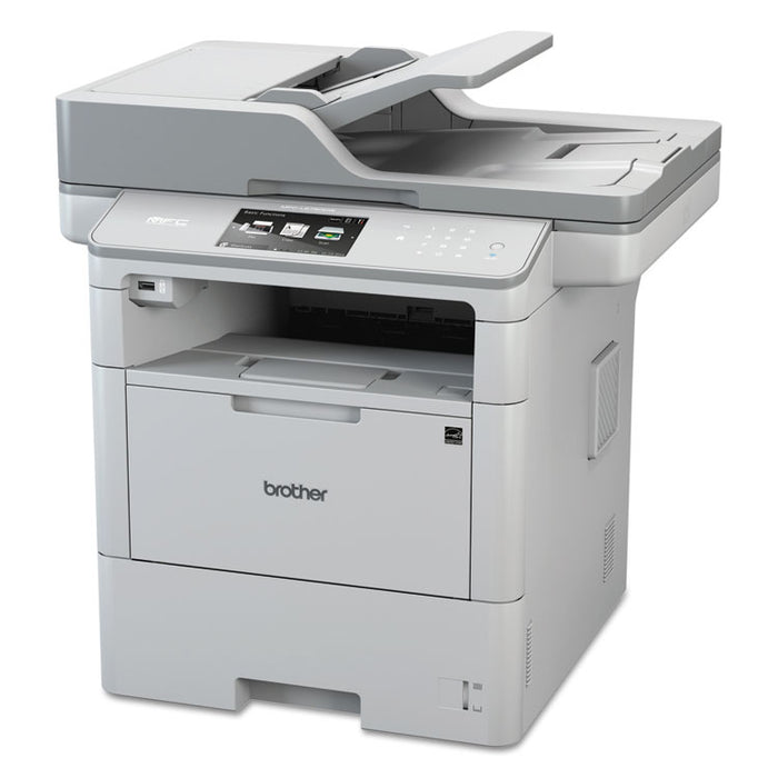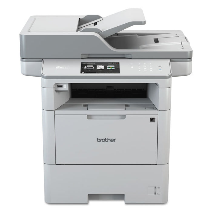 MFCL6750DW Business Laser All-in-One with Advanced Duplex, Wireless Networking and Large Paper Capacity. Business monochrome laser all-in-one with low-cost output thanks to the included 12,000-page cartridge (approx. yield based on ISO/IEC 19752), plus advanced security. 570-sheet paper capacity, expandable to 1,610 sheets with optional add-on trays. Automatic duplex printing plus single-pass two-sided scanning, 70-page capacity auto document feeder. Print from mobile devices over a wireless network. 4.85” color Touchscreen display. Machine Functions: Copy; Fax; Print; Scan; Printer Type: Laser; Maximum Print Speed (Black): 48 ppm; Network Ready: Yes.Fast, high-quality printing and copying at up to 48ppm.4.85" color Touchscreen display for easy menu navigation and creation of up to 48 customized shortcuts.Low cost per page thanks to a super high-yield 12,000-page toner cartridge (approx. yield based on ISO/IEC 19752) – included for extra value.520-sheet capacity paper tray adjustable for letter or legal plus a 50-sheet capacity multi-purpose tray for envelopes or alternative media types. Total capacity expandable to 1,610 sheets with optional add-on trays.Flexible connectivity with built-in Gigabit Ethernet or wireless networking or local printing via USB interface.Print from/scan to mobile devices over a wireless network.Create two-sided output and help save paper with automatic duplex printing.70-page capacity duplex auto document feeder scans both sides of the page in a single-pass for two-sided scanning up to 56ipm (mono).Large document glass for scanning/copying bound materials or up to legal size documents.Advanced security features such as network user authentication to help protect against unauthorized access to device.