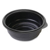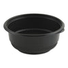 MicroRaves Incredi-Bowl Base, 8 oz, 4.75" dia x 1.75"h, Black, 500/Carton. Withstands temperatures to 230°F under heat lamps, in warming units or the microwave. Resistant to hot grease and oils. Great for cold foods too. Tough, cut-resistant material is also light and durable. Food Container Type: Bowl; Material(s): Polypropylene; Capacity (Volume): 8 oz; Color(s): Black.