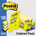 Original Canary Yellow Pop-up Refill Cabinet Pack, 3" x 3", Canary Yellow, 90 Sheets/Pad, 18 Pads/Pack