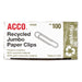 Recycled Paper Clips, Jumbo, Smooth, Silver, 100 Clips/Box, 10 Boxes/Pack