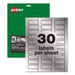 PermaTrack Metallic Asset Tag Labels, Laser Printers, 0.75 x 2, Metallic Silver, 30/Sheet, 8 Sheets/Pack. Create your own heavy duty metallic asset tags, barcode labels, equipment tags, property tags and nameplates with a laser printer. Accurately record and monitor valuable assets such as electronics, equipment, tools, furniture, containers and more. Print on demand and as many as you need, avoiding high minimum order quantities and long lead times. Labels feature a strong adhesive and the durable metallic material is chemical resistant, waterproof and abrasion resistant. Customize with text, graphics, serialized numbers and barcodes with the free Avery Design & Print software with barcode generator. Shape: Rectangular; Label Size - text: 0.75 x 2; Label Color(s): Metallic Silver; Color Family: Silver.