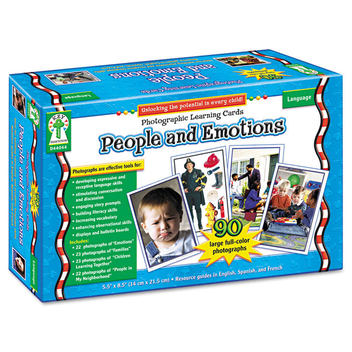- People & Emotions-Cards depict emotions, families, children learning and "people in my neighborhood". Box includes 90, 5 1/2 x 8 1/2 cards and six resource guides.