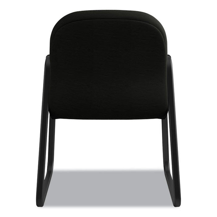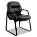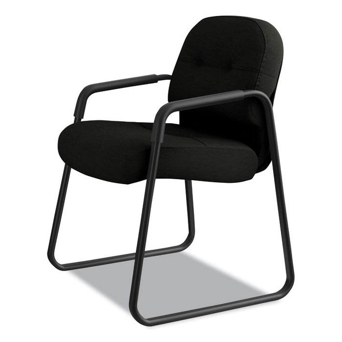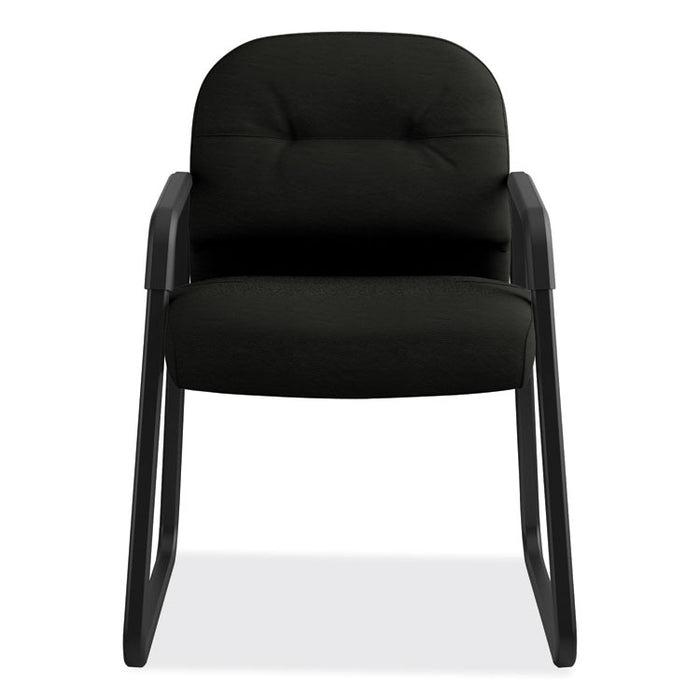 Pillow-Soft 2090 Series Guest Arm Chair, Leather, 31.25" x 35.75" x 36", Black. ''Memory foam'' in seat cushion responds to body dynamics. Fiber fill in back with recess at the base to cradle the lumbar region. Tufted, gathered cushions provide exceptional comfort. Sled base allows chair to slide easily on floor or carpet. Leather. Recommended Applications: Executive & Management; Guest, Reception, Waiting Room & Lounge; Seat Color: Black; Back Color: Black; Color Family: Black.